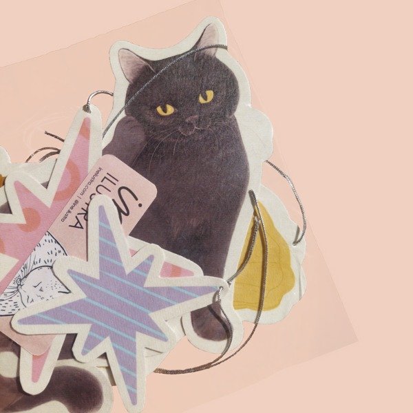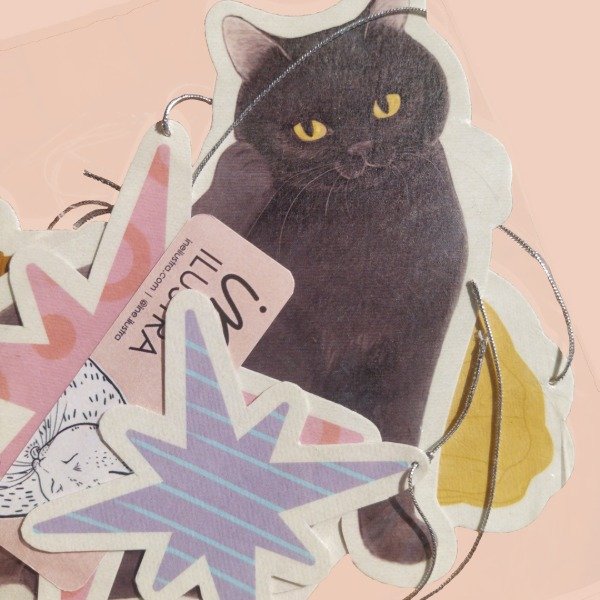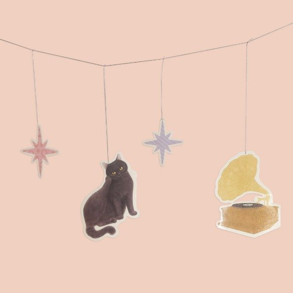 Colgante de 4 piezas laminadas y cordel metalizado plateado.